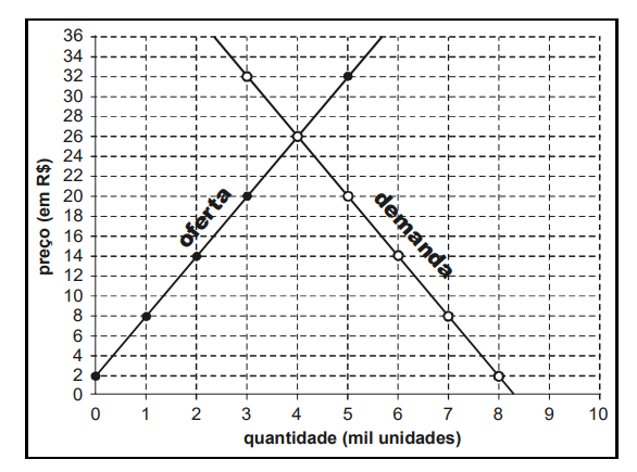 Em livre-comércio com o resto do mundo, sem qualquer intervenção do governo, o preço do bem em equilíbrio seria de R$ 26, e a demanda do bem, na referida economia, equivaleria a 4 mil unidades.